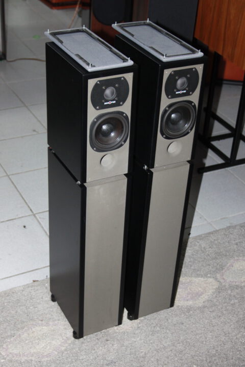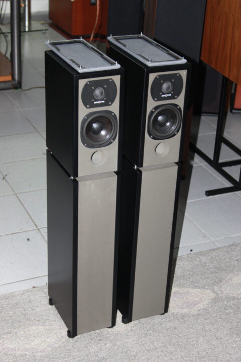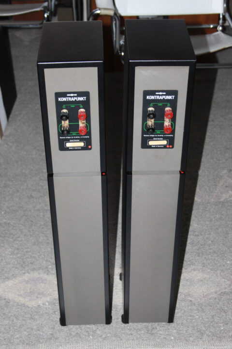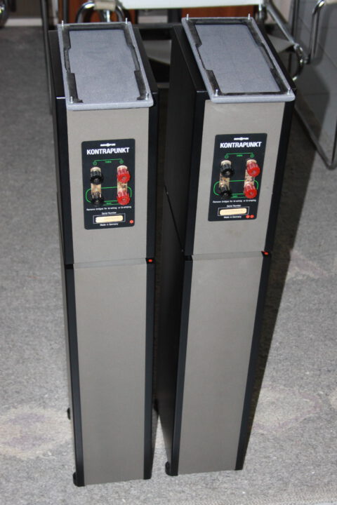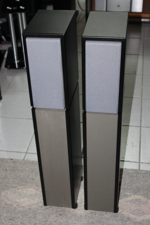 Exzellent 2-Wege Bassreflex Boxen mit Originalständer (Quarzsandbefüllung), Nenn-/Musikbelastbarkeit 60/150W, 85dB Wirkungsgrad, 8 Ohm, Maße: 850 x 150 x 240mm, sehr guter Zustand