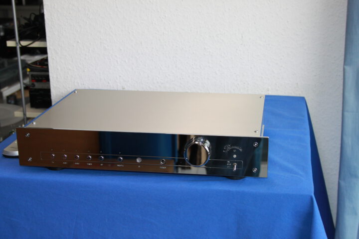 Weltklasse Vollverstärker in exzellenter Verarbeitungsqualität mit Chromfront, 2 x 120W, 3 x XLR, 2 RCA Eingänge, sehr edel mit Chromfront, FB