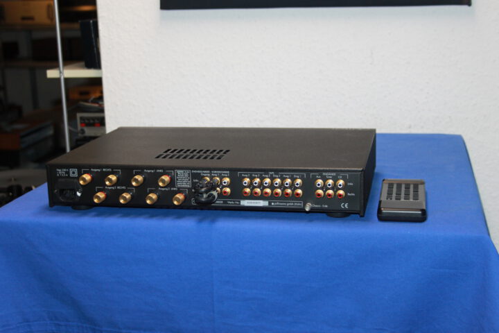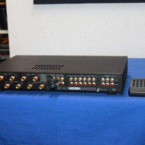 Hervorragender Vollverstärker, sicher einer der besten bezahlbaren Verstärker überhaupt, 2 x 105W, 3 Line-Eingänge, 3 Tape Schleifen, auftrennbar in Vor- Endstufe und zus. zweiten Vorstufenausgang, FB