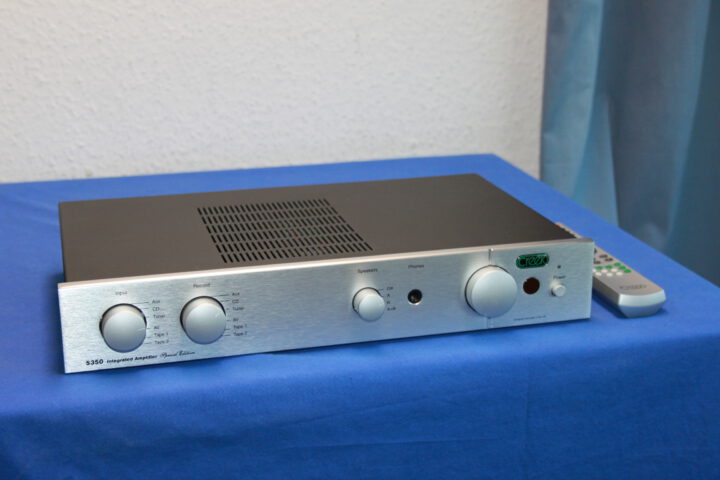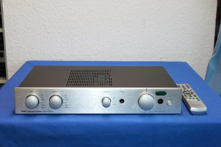 Exzellenter britischer Vollverstärker mit 2 x 85W Sinus an 8 Ohm, 6 Line-Eingänge, 2 Rec-Out, FB