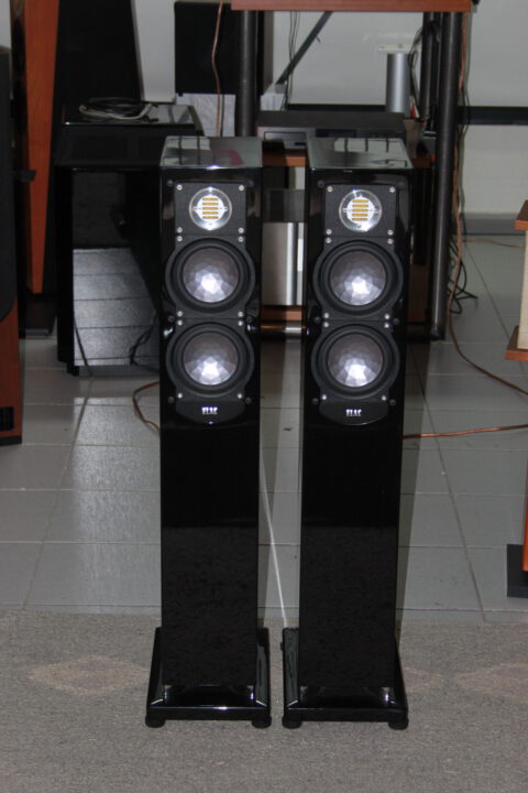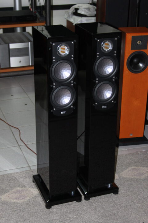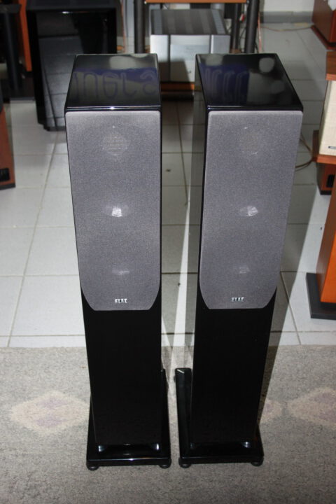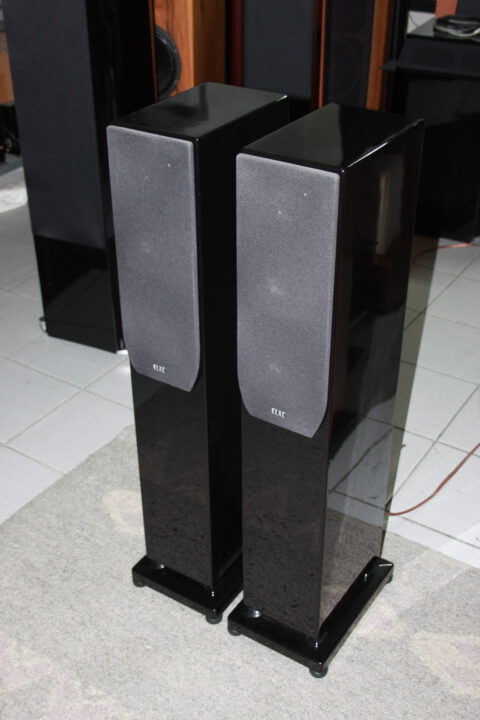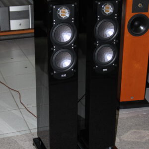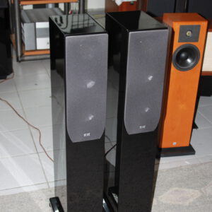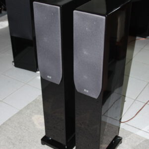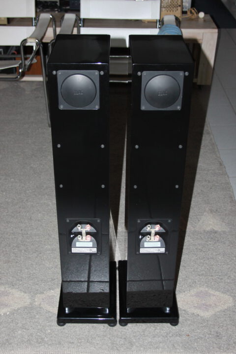 Sehr gute und hochwertige Standlautsprecher aus der deutschen Boxenschmiede Elac. Es sind 2,5-Wege Bassreflex-Lautsprecher. Bestückt mit einem 150mm Tieftöner, einem 150mm Tiefmitteltöner und dem legendären JET-Hochtöner. Die Boxen haben eine Nenn-/Musikbelastbarkeit von 120/160 Watt, Impedanz 4 Ohm, Wirkungsgrad 89dB, Maße 1021 x 170 x 220mm, Sonderlack Hochglanz-Schwarz