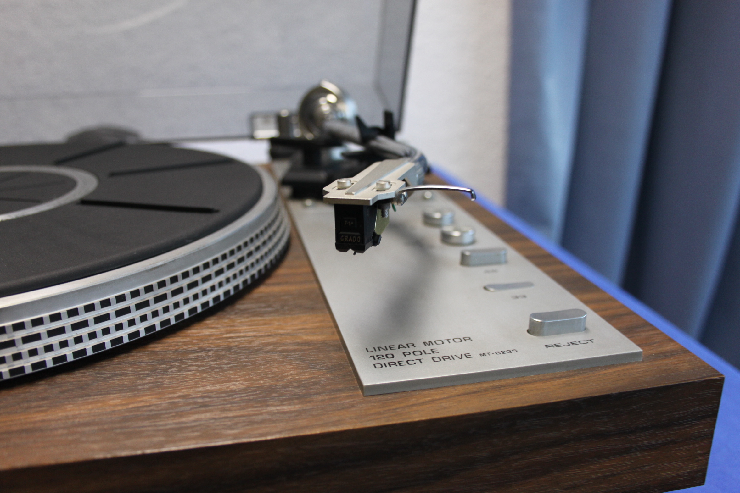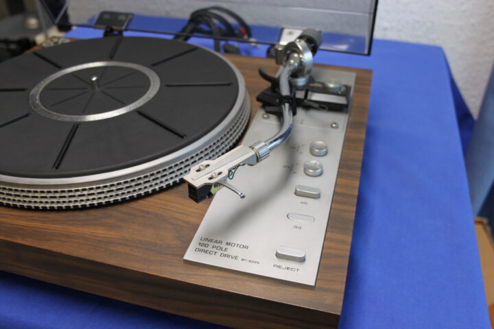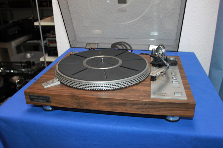 Sehr guter direktgetriebener Plattenspieler aus der Zeit Anfang 80er Jahre, recht schwer mit 8kg, Moving Iron-System Grado F-1+ untergebaut