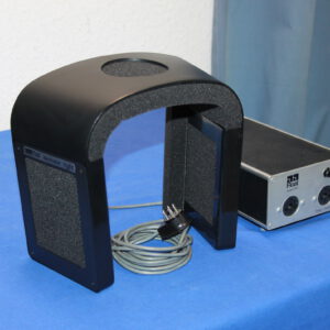 Legendärer elektrostatischer Kopfhörer mit Speiseteil PS-1 – futuristische Bauform – die Schaumstoffpolster sind neu – Der optische Zustand ist insgesamt noch recht schön – der Kopfhörer ist getestet und er funktioniert problemlos – Es ist allerdings ein schon recht betagtes Vintage-Gerät, so dass es eher als Vintage-Sammlergerät angeboten ist, bei dem jederzeit mit Alterserscheinungen oder Ausfällen gerechnet werden muß !