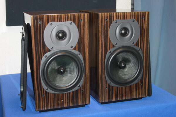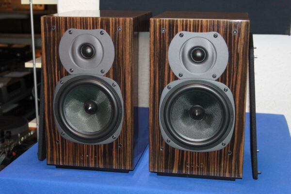 Sehr gute 2-Wege Kompaktlautsprecher, empfohlene Verstärkerleistung 30-200W, 6 Ohm, Maße: 340 x 205 x 279mm, hochglanz