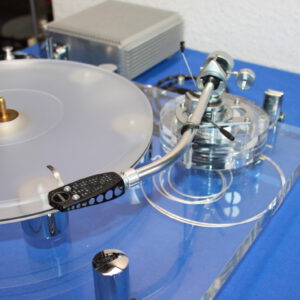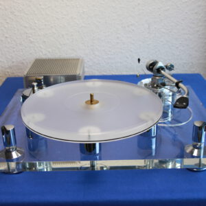 Hochwertiger Plattenspieler aus der Edel-Manufaktur Transrotor mit SME-Tonarm, ausgelagertes größeres Netzteil – ohne Haube